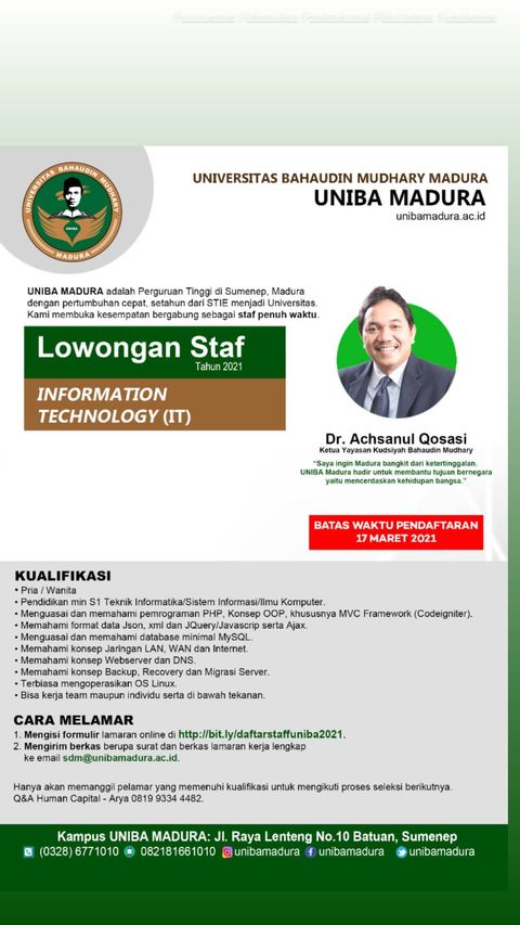WE ARE HIRING !! STAFF IT UNIBA MADURA