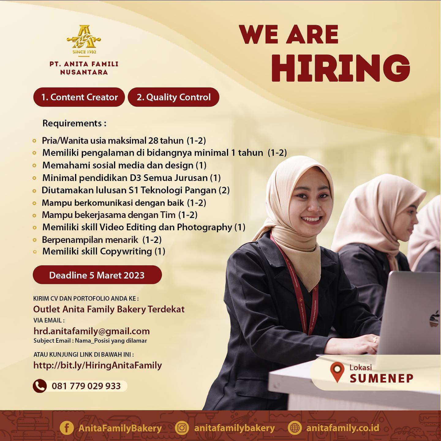WE ARE HIRING PT. ANITA FAMILI NUSANTARA