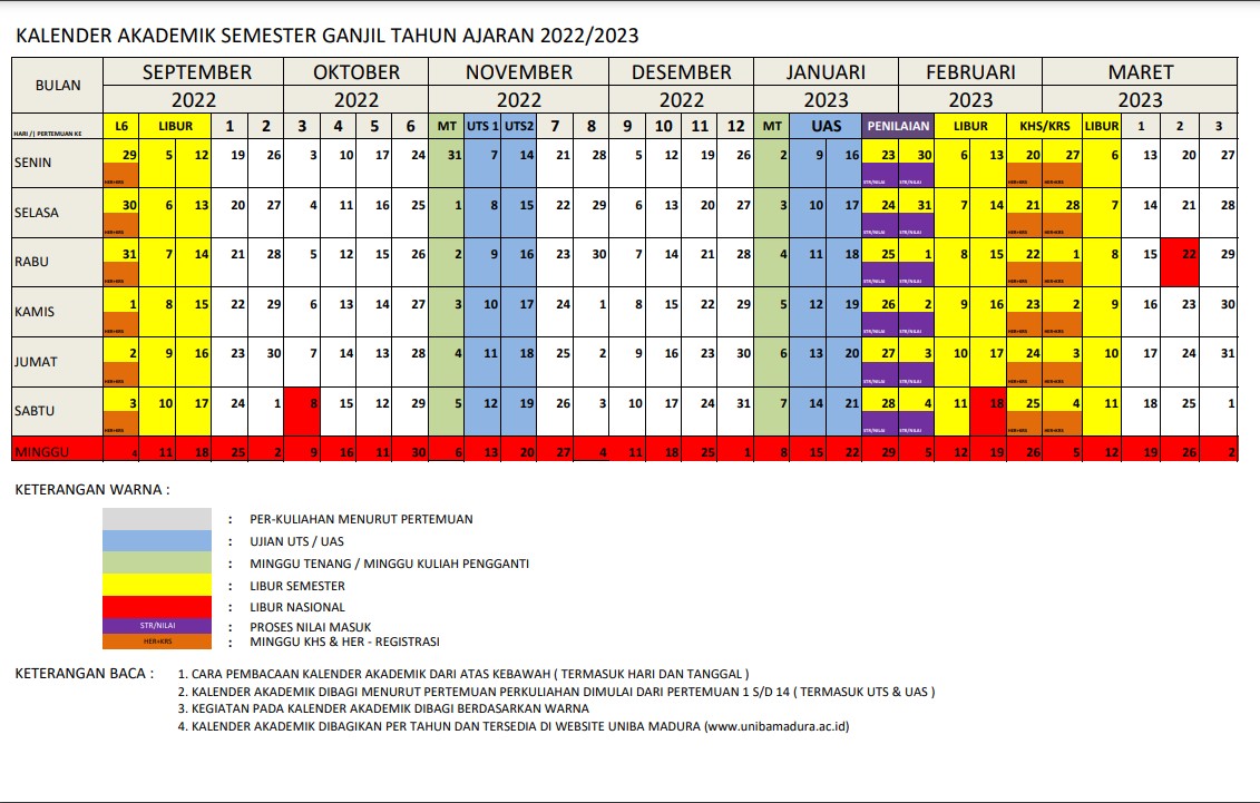 KALENDER AKADEMIK SEMESTER GANJIL TAHUN AJARAN 2022/2023